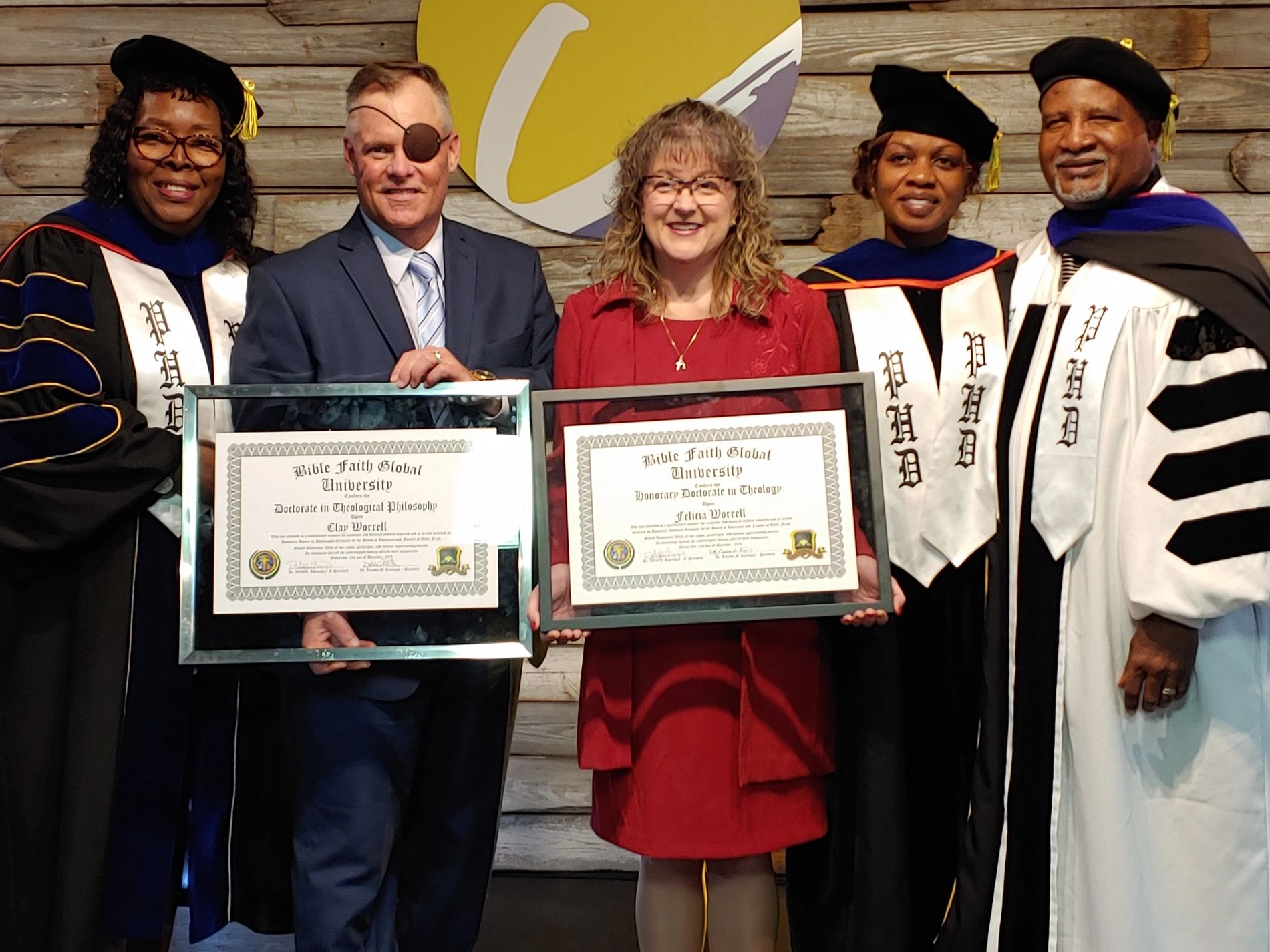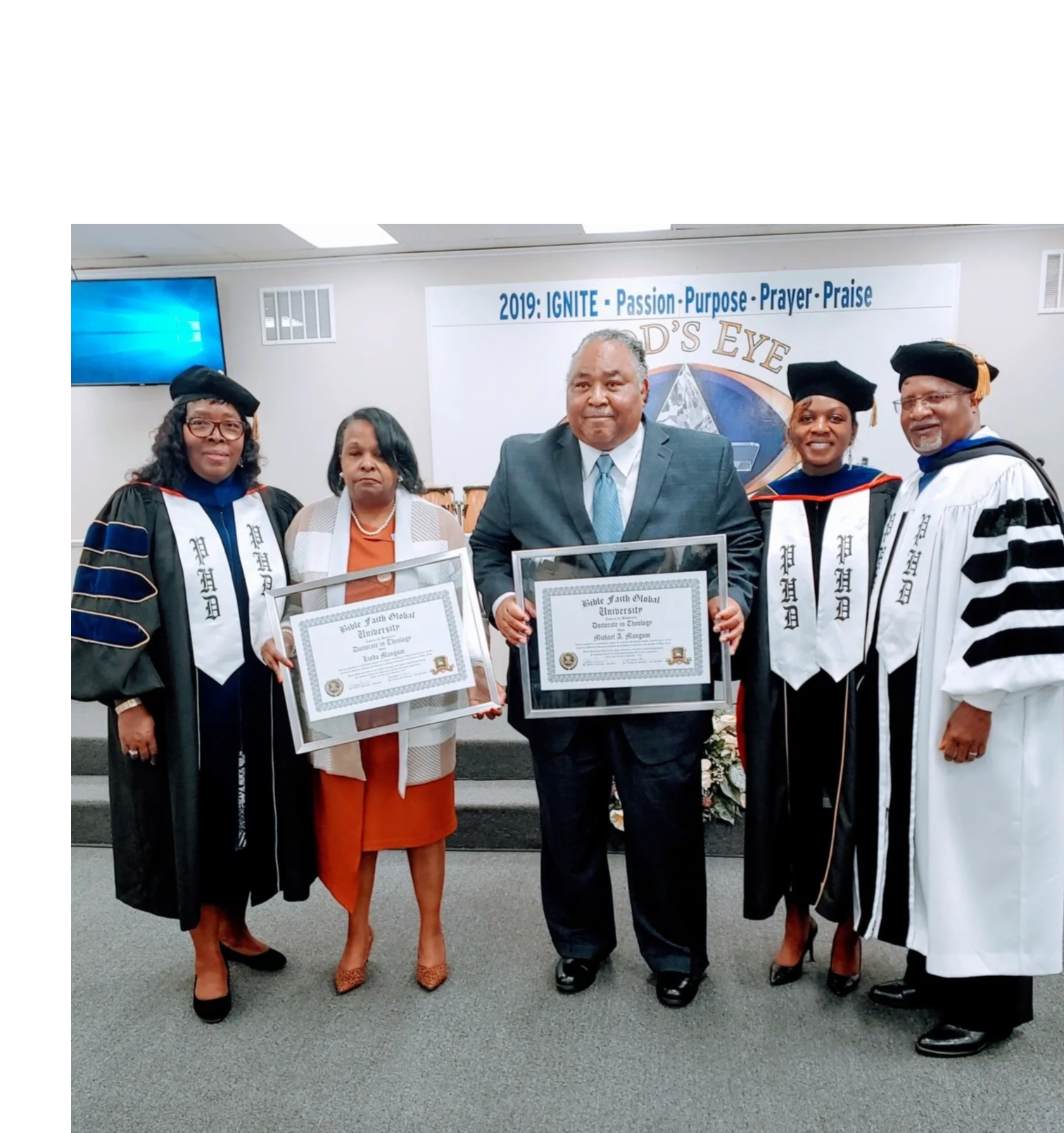 BFGU honors them by conferring Honorary Doctorate Degrees upon them. These degrees carry the same authority and intellectual academic integrity as those who have earned their degrees through BFGU and all other institutions of higher learning. This is not to belittle or disrespect those who have earned their degrees through hardships, perseverance, dedication, in the pursuit of the Spirit of Excellence. This is to honor those who desired to do likewise, but due to varied circumstances, situations, and demands of active ministry, were not able to do so. BFGU honors you and we are your perpetual partner and co-laborer in Christ Jesus.